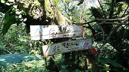 鶯歌石山,399m,無基石。陡上結束處展望最佳,可俯瞰田寮洋山、大堀澳山、石城山。山頂標示牌掛在下方的樹林空地。H392m |