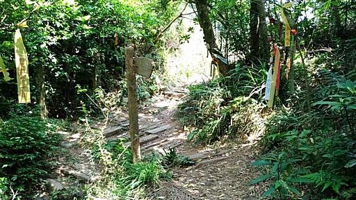荖寮街9之2號民宅,轉為水泥小徑,轉彎處有土產道,可銜接靈鷲山車道。H45m |