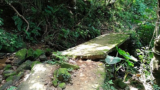 隆隆池叉路,左下山路往五叉路口約20分、荖蘭山、福卯古道,直行往隆隆池約30分,取左陡下。後續的山路大都不走稜線,有古道的況味,路況良好。H420m |
