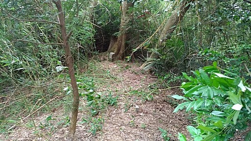 榕樹小屋叉路,從小屋旁進入小產道往登崩崁山。H218m |
