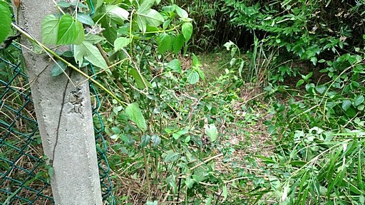火龍果叉路,農路轉腰繞,取左上改走農地,不離稜線太遠。接近山頂時,農地有落差與圍籬,無法直攻山頂,先續往前。果然在另一側有荒廢的小徑往山頂。H240m |