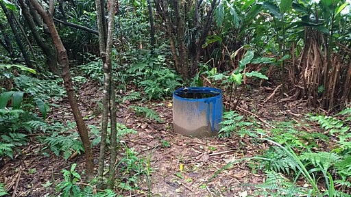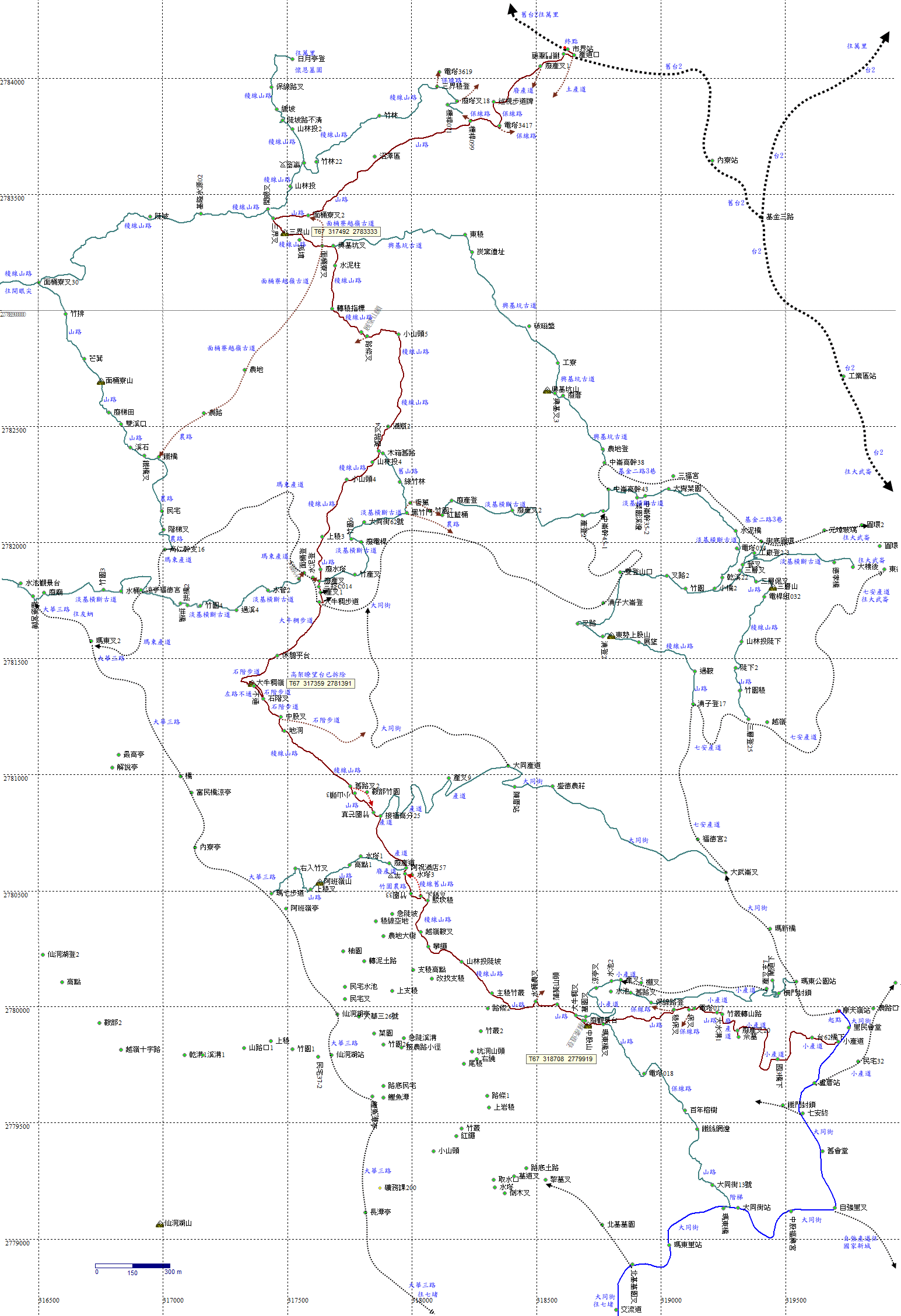 藍色水桶,已前並沒有,右側發現有農路往下,當地居民想在這附近開發農地。續行稜線山路。H240m |
