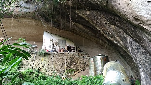 月眉洞,大型內凹的岩洞,設有小廟。續行轉為土石小產道。H195m |
