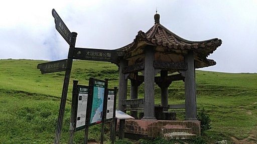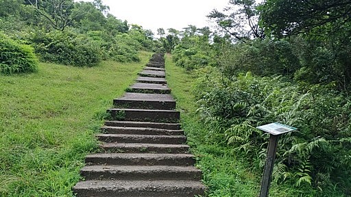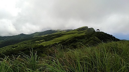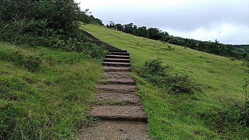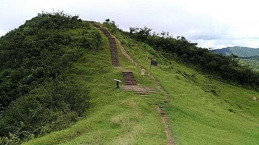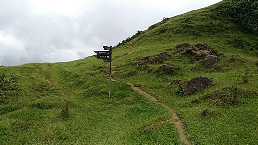 指標叉路,左下往桃源谷中央涼亭、貢寮火車站,直行往桃源谷草嶺線步道,直行。本有腰繞土路繞過福德山,但現在似乎都往上登福德山,高處可俯瞰桃源谷大草原。H488m |