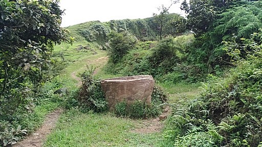 尪仔嶺(三方向山東峰),430m,雙溪水源保護區界07、山字水泥柱。鞍部五叉路口,有座古老的石砌小土地公廟。左下古道往大溪川,右下古道往內寮127號民宅,直行稜線山路往三方向山,右前為三方向古道往竿蓁坑。H437m |