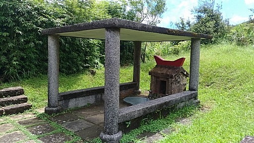 產道路底,有片大草地,散佈幾座墓園。到最大的陳墓稍微休息一下。H442m |