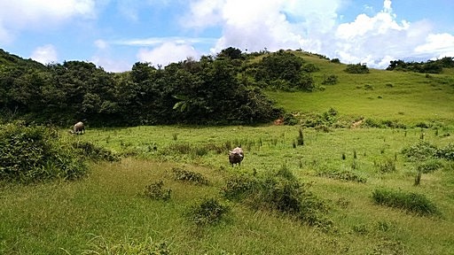 續行,循不明顯山路下往西側草原,遠遠就看到有牛隻。 |