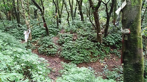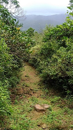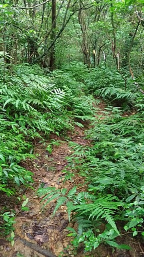 續行,夏天登山真的考驗意志力,因為天氣炎熱,天氣又不太穩定,決定取右,從內寮下山。這條尪仔嶺古道路況還不錯,一路緩降。 |
