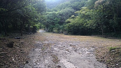 小粗坑古道入口,位於產道路底,可迴車。設有步道指標與導覽圖。續行進入好走的小粗坑古道。H135m |
