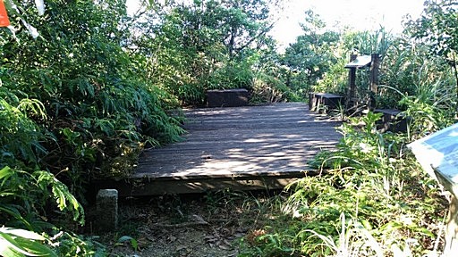 大竿林福德祠,古老的石砌小土地公廟,廟旁有兩座古碑。續行有兩條路跡,一上一下,已不見登山路條,小粗坑古道舊路有機會再來探索,休息。H337m |