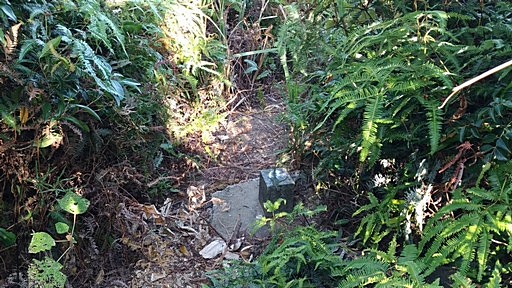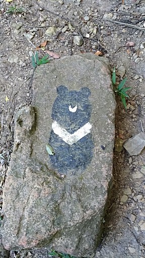 電塔叉路,直行為保線路往電塔,亦可接琉榔路步道,但後段路況不明,右下往九份(頌德公園)。突然發現步道指標柱上有基石噴漆,決定探探保線路。H435m |