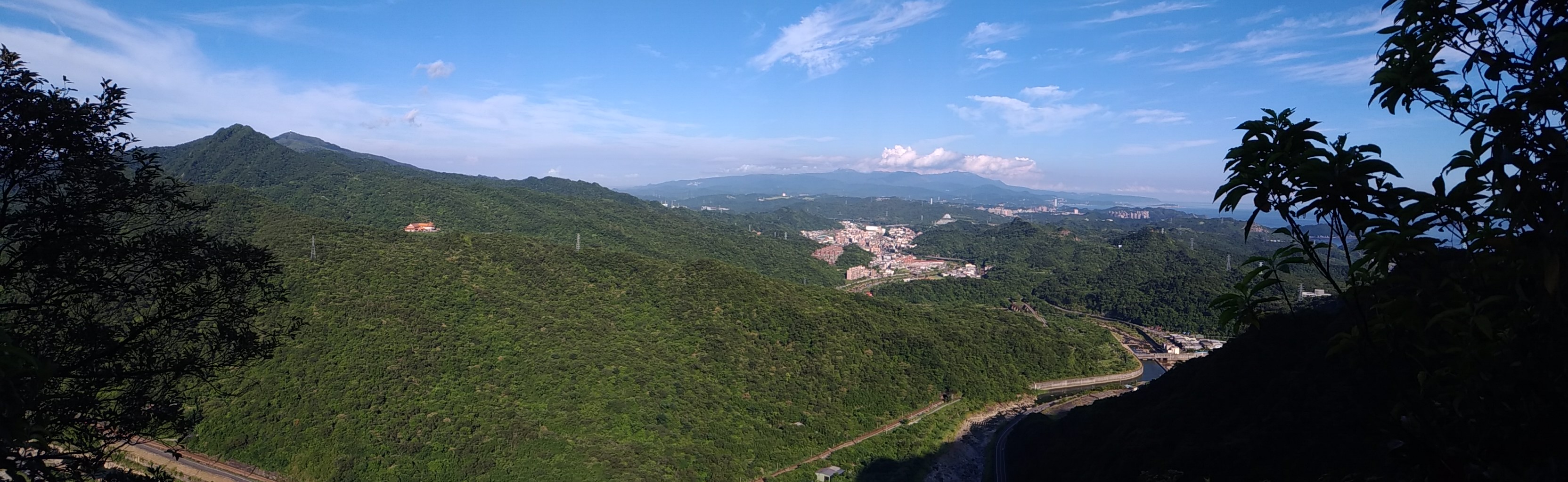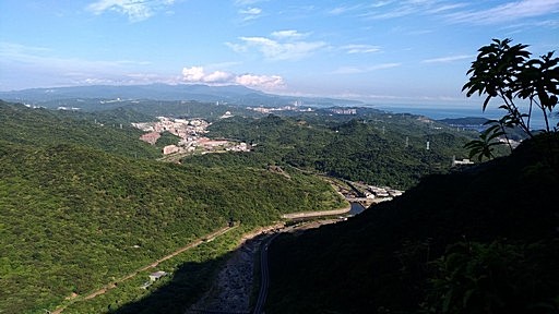 小粗坑山,485m,台陽62號基石。續行本有山路往大粗坑山、粗坑口山,但已荒廢。展望比不上古道越嶺點,且無樹蔭有點熱,只可眺望基隆山。退回越嶺點休息納涼。回程途中反而展望佳,可眺望深澳灣。H475m |