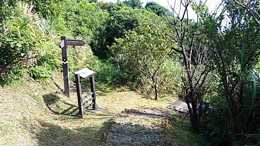 廁所叉路,左往金山佛堂廁所,設有標示,這才是正路,誤取右繞至廟後高處,退回,中途遇見一位出家人,指點了正途。H306m |
