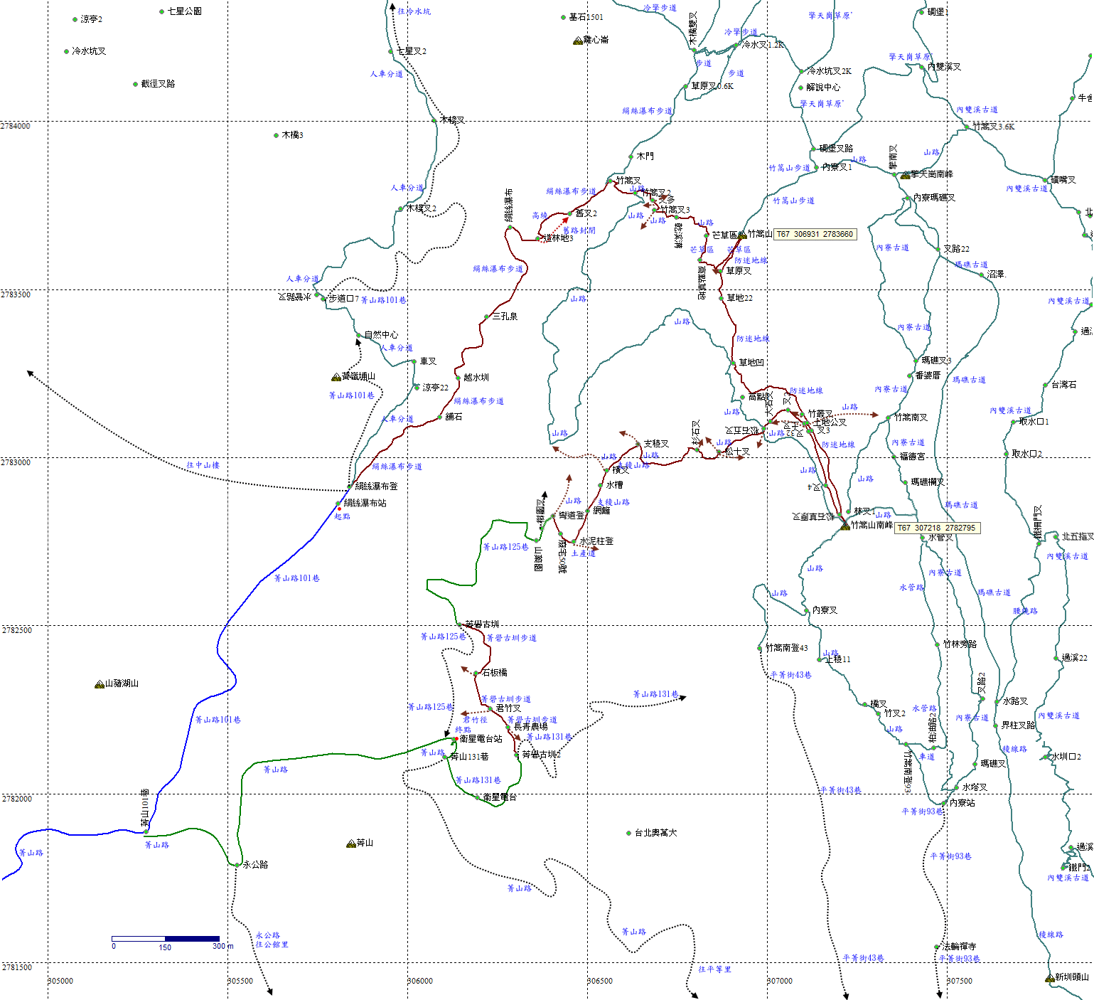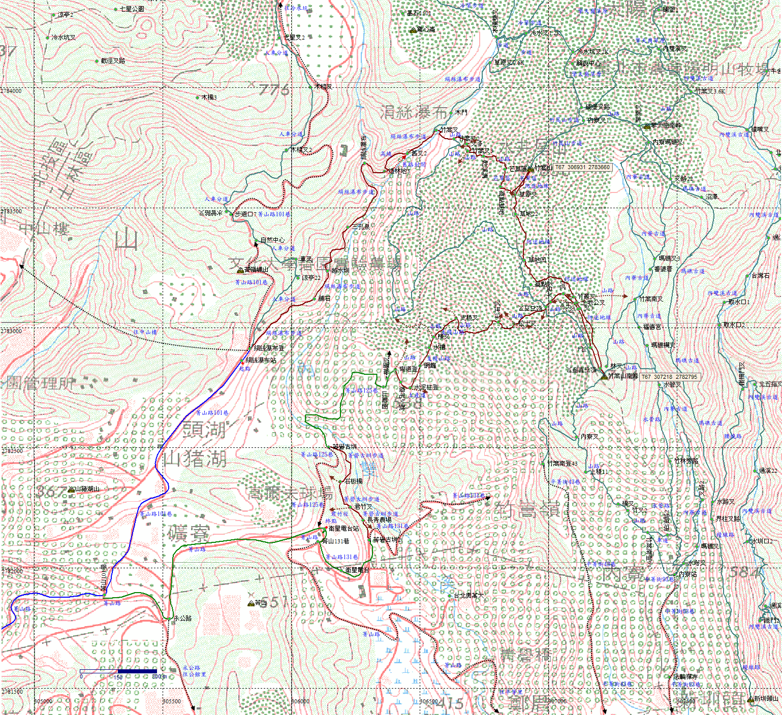 09:16 竹篙山南峰(瑪礁山),714m,北市地測精幹點‧市196。