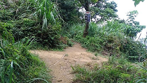 回到小粗坑山登山口,經過步道路線圖處並無入口,但下方不遠處可見步道。H465m |