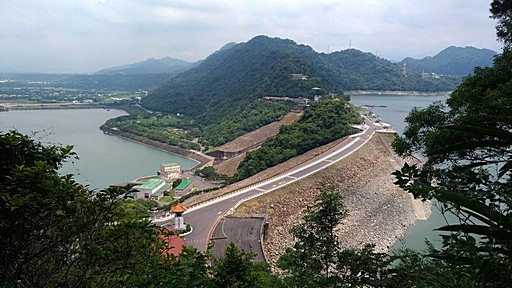 嵩台,石門水庫大壩上的制高點,設有涼亭與觀景台,展望佳,來張石門水庫寬景照。從另一側步道回到大壩。H279m |