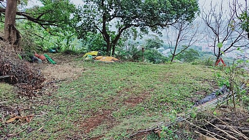 復興山北峰叉路,右上小路有一個塑膠繩,穿越小片樹林,立刻進入了一處農園。H124m |