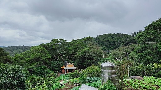 農園入口,入口有561號信箱,穿越復興三路有石階往清天宮。很快接上小車道之後,一路往上即達。H409m |