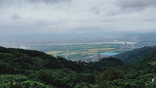 流籠空地,展望極佳,可眺望北投、關渡平原。前行為寬緩的農用土路,空地右側可見一座流籠,空地左側有兩條農路往菜園,第二條水平通往燒炭窯,取之探看再回。H264m |