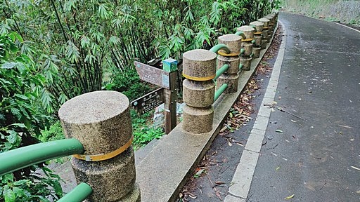 山路出口,抵達復興三路欄杆下方,得攀爬回道路。H340m |