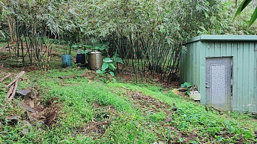 秀山路150巷63號古厝,繞過古厝前方水平可往貴子坑。發現已錯過市274基石,退回古厝後方竹園。H139m |