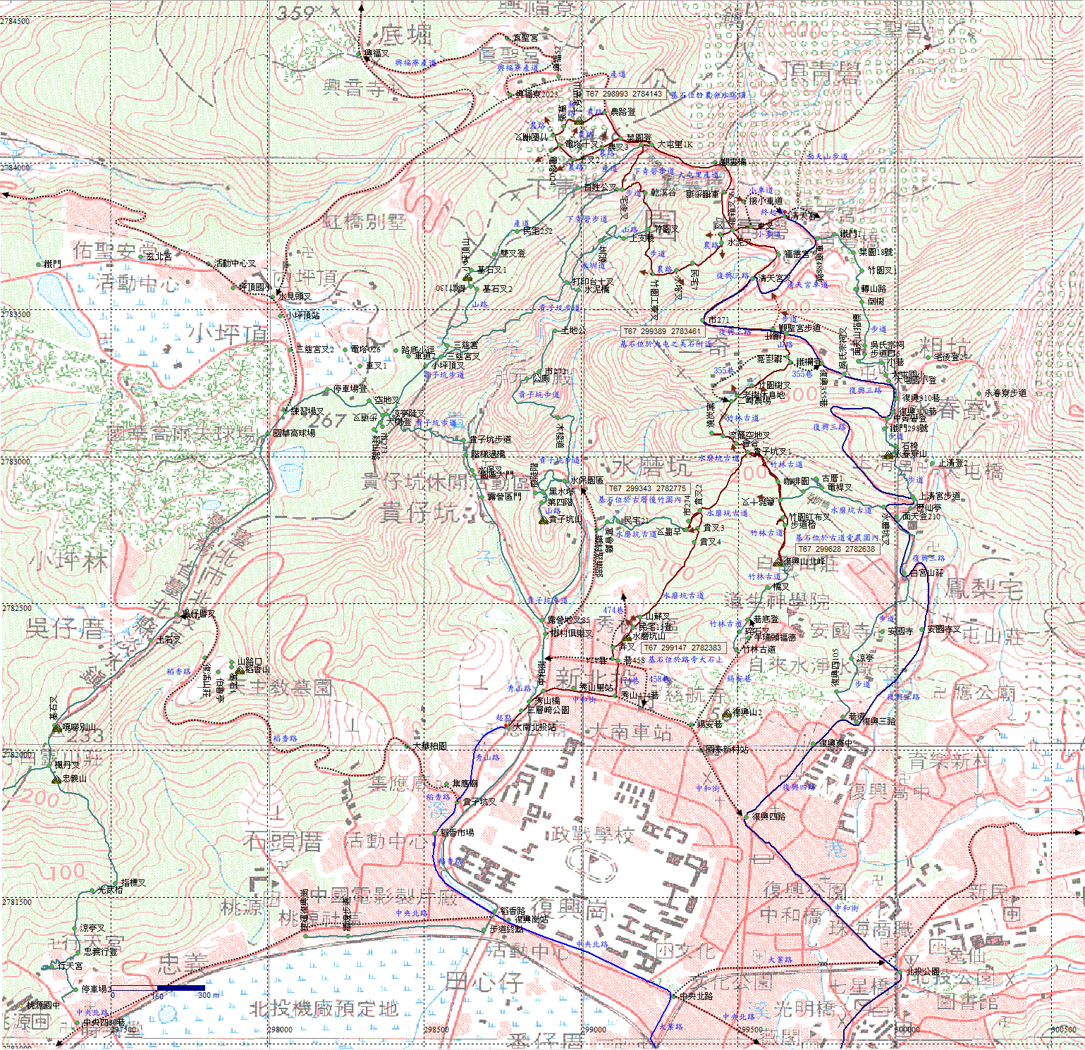 北市地測精幹點‧市271,位於復興三路大屯之美彎道,竹園入口旁。H377m |