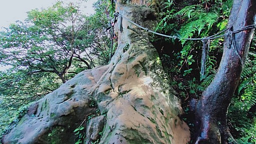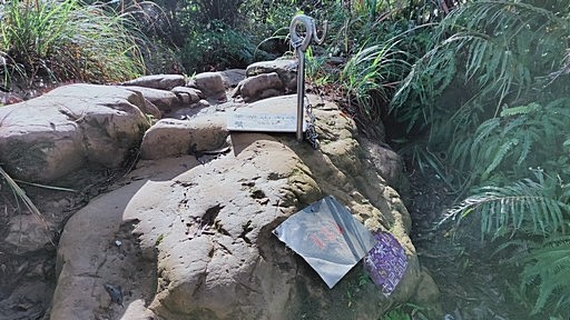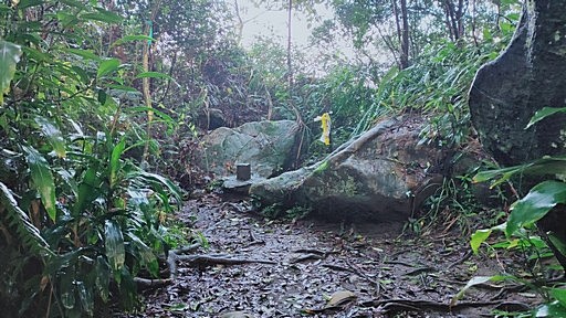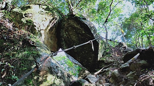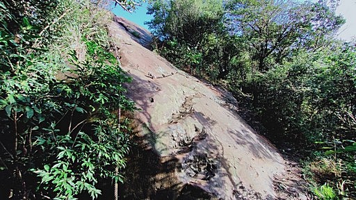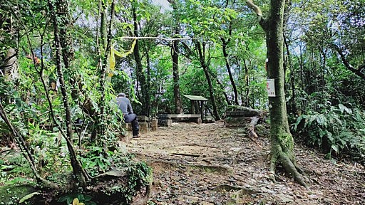 08:19 二格山基石位於觀景台旁廢棄電台圍牆內。