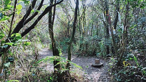 帕米爾公園叉路,右下山路往帕米爾公園,上回想串連帕米爾公園未果,現已開闢新路,中途有燒炭窯。續前行。H464m |
