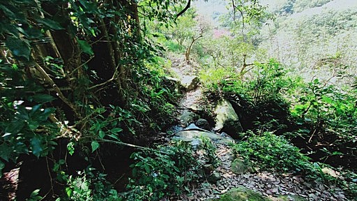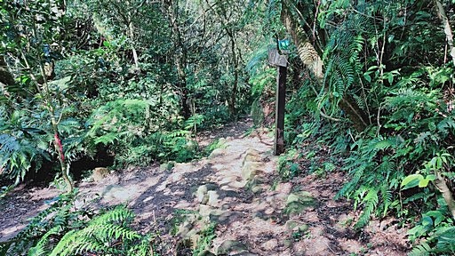 梅花山登山口,位於北28鄉道(五指山公路),設有台北大縱走地圖,不出公路,左下續行步道往風櫃嘴。這段步道途經清淺的小溪流,已變得熱門,沿途遇到頗多山友。H602m |