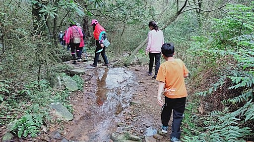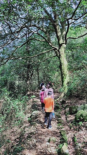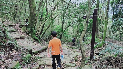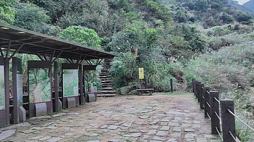 解說亭,續行轉為石階步道,一路往上。中途有些捷徑,主要是循稜而上的山路,這回多走捷徑。 |