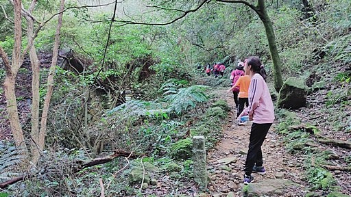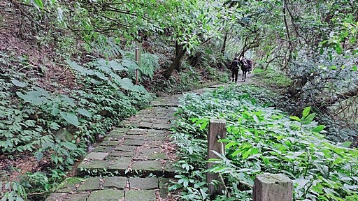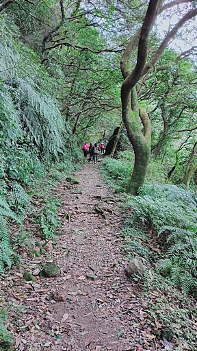 捷徑接上日人路,左側有步道封閉柵欄,取右循日人路回步道主線。日人路平緩好走無階梯。 |