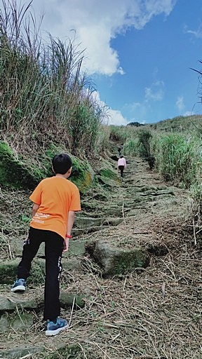 出發,循步道往魚路古道,一開始平緩好走。往金包里大路城門2.5km、擎天崗3.5km。 |