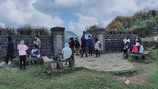 金包里大路城門,接上擎天崗環形步道,休息。城門靠近擎天崗角落有兩顆基石,專賣局造林地第十九號基石,大正十一年六月設立,另一顆是陽明山農場界樁。 |