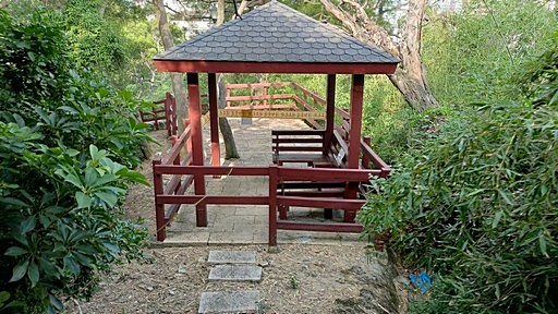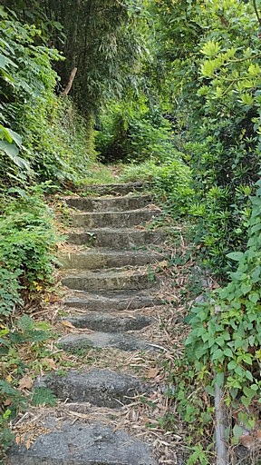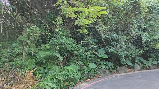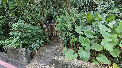公館山步道入口,位於瑞光路112巷口、公館山公車站牌附近,由於上端有圍籬封路,這條步道已少人走,取之上行。步道沿途經過一些涼棚休息區,都已有些荒廢。H20m |