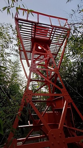 公館山(蟾蜍山),95m,三等三角點794(軍區、失)、三等陸補801(軍區)。基石位於軍營內無法登臨,目前僅能登上軍營旁的鐵塔山頭,竹林圍繞無展望。續行有步道下往軍營空地,距離基石點位仍遠,請勿亂闖。H85m |