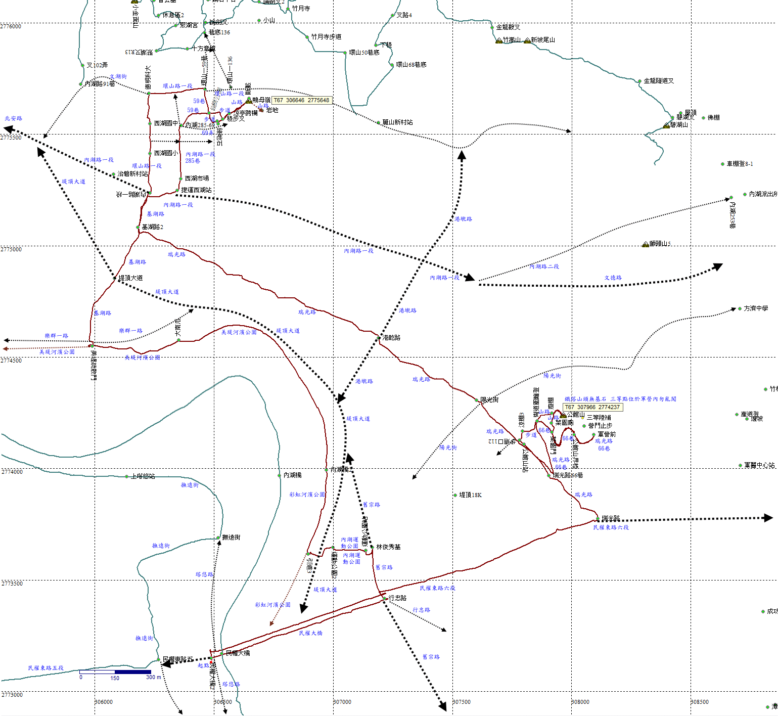 內湖運動公園,疫情期間設施多封閉,直線穿越。H19m |