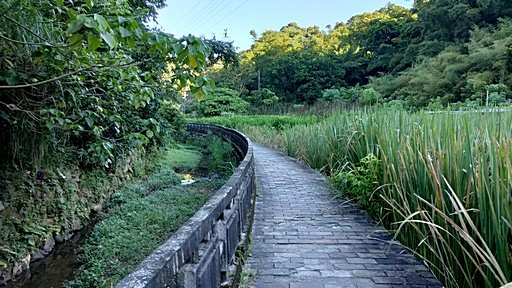 溪邊步道,左右兩側都可行,右路有些路段無法通行,一路取左岸步道。這條步道蓋得不錯,可惜這條內溝溪的支流猶如臭水溝,難免有異味。H27m |