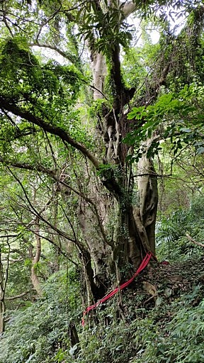 回到硬漢嶺步道三五八叉路,回頭再找。沿途搜尋可疑地點,但因缺乏路條導引,不曉得日本軍營遺址在哪?H523m |