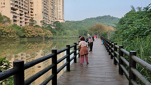 金龍湖(匠頭埤、象頭埤),台北盆地三大湖之中最大的,另兩湖為大湖、碧湖。右轉湖邊車道往學頭坡山。H22m |