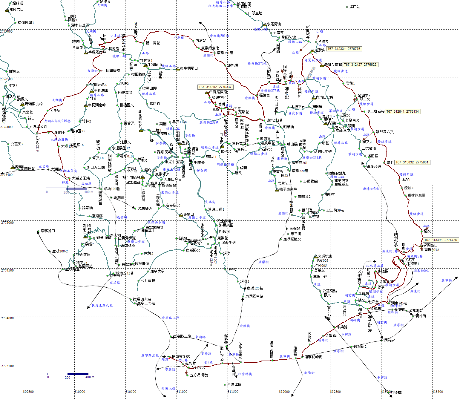 康樂街238巷口,右轉進入238巷登牛稠尾山東南峰。H27m |