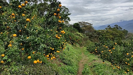 續行,往沙坑山,路況不錯,但沿途都沒有路條。稍後即進入另一座果園,滿山都是橘子。 |