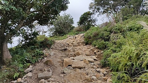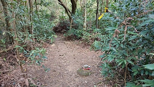 小石階叉路,左上小石階有路條,應可上石龍山稜,續前行。H103m |