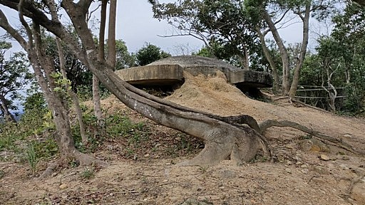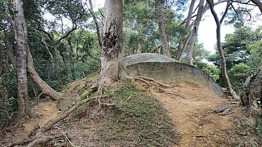 碉堡,位於格物台後高點。續行稜線土路緩上。後段漸入樹林,再轉為腰繞。H112m |