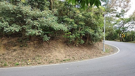 格物台上端登山口,位於劍南路一處彎道,穿越劍南路有續行的稜線山路入口。H126m |