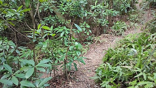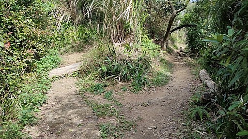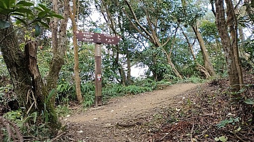 大崙尾山西南南峰叉路,土路步道往右腰繞而過,取左登頂。H279m |