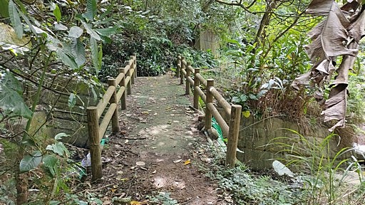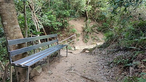 格物台登山口,擋土牆缺口有塊水源3木牌,明顯的土路步道上稜。上稜處有座碉堡,土路步道循稜緩上。沿途展望佳。H60m |