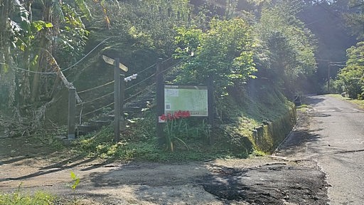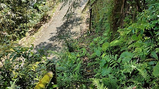 虎寮潭步道入口,位於一條陡峭的小產道旁,入口旁無法停車,休息整裝。H347m |