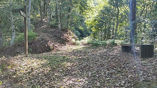 第二登山口叉路,左往步道(第二)登山口950公尺,直行往開眼崙360公尺,直行。H363m |