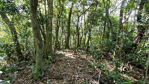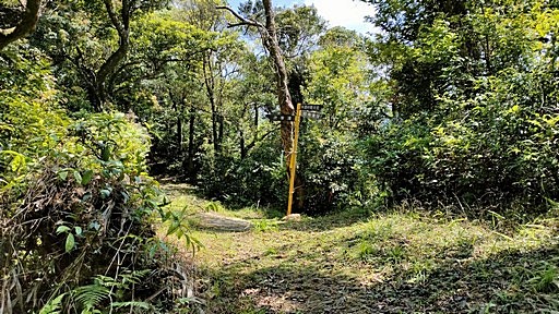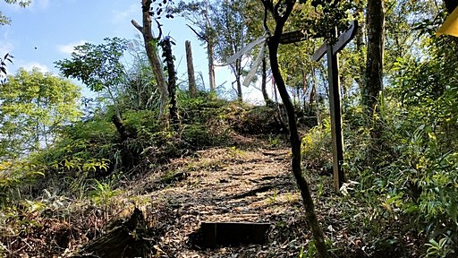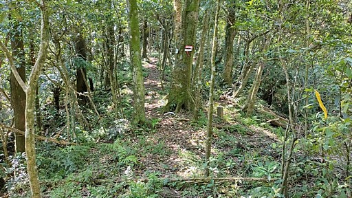 登頂前叉路,左往步道(第三)登山口380公尺,直行往開眼崙20公尺,直行。H520m |