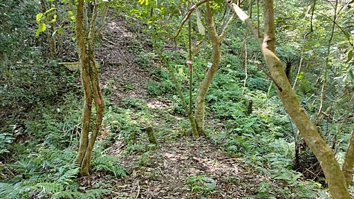 續行,稜線山路開始下坡,沒有像另一側那麼陡峭。 |